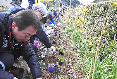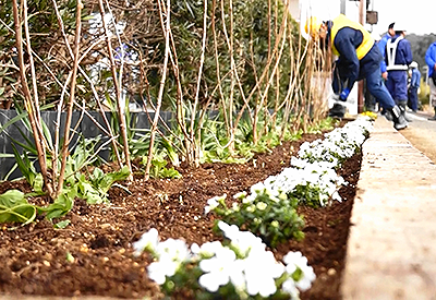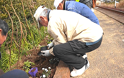 「寸座駅」では、1月25日(土)、地元の寸座百寿会と浜松ハーモニーロータリークラブのみなさんによって植栽活動が行われました。