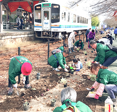 「気賀駅」では、2019年11月9日(土)、多くの企業・団体のみなさんが集まって植栽活動が行われました。
