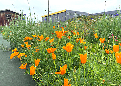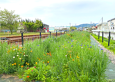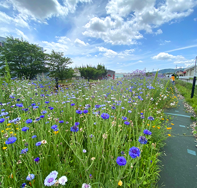 さらに、今では「ハナビシソウ」、「サーモプシスシネンシス」、「ヤグルマソウ」、「ハルシャギク」、「ガウラ」、「ルトベキアタカオ」、「ユーパトリウム・セレスチナム」、「ディスカンプシア・ゴールドタウ」など幅広い花を追加した植栽が進んでいます。