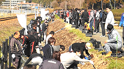 「敷地駅〜遠江一宮駅」間の植栽は、2019年3月9日(土)のまだ寒さが残る中、大勢の参加者によって行われました。