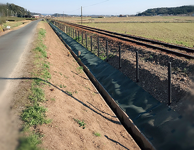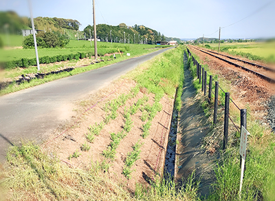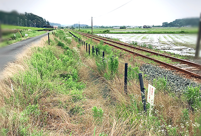 約900メートルの植栽地は、線路脇の斜面。浜松いわた信用金庫の職員も加わり、450人以上の参加者によって、ミソハギの植栽活動が行われました。
