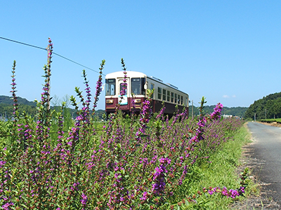 ミソハギは、日本の固有種で湿地向き。初夏に紅紫色の花を咲かせます。全長約1kmの紅紫色と茶畑の緑のコントラストが美しいことでしょう。